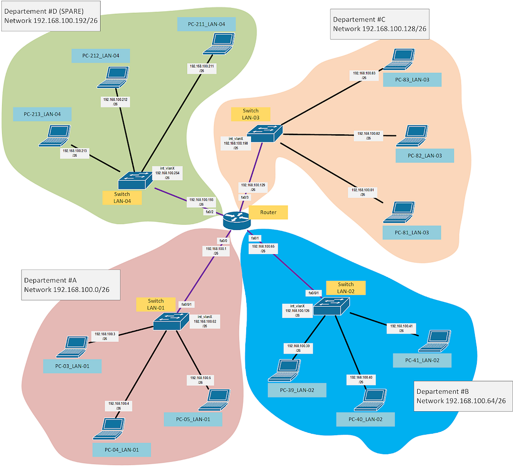 Intinya disini kemampuan kamu sudah lebih ke penerapan ip addressing yang lebih kompleks. Akan lebih menarik jika networknya memiliki VLAN dan kasus-kasus seperti network summarization, network overlap, dan lain sebagainya.