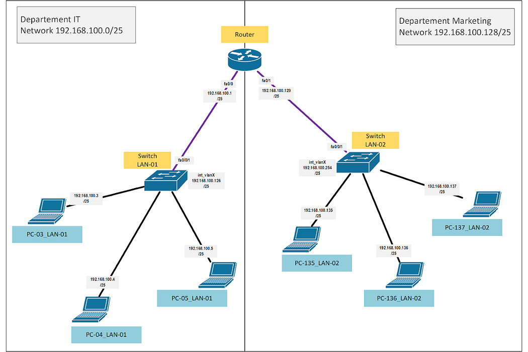 - Jumlah subnet: 2⁷ = 128 subnet.