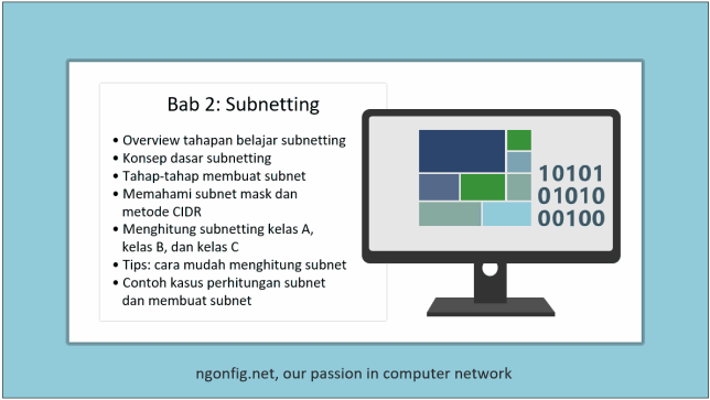 Karena subnetting termasuk materi yang advance, jadi tidak bisa langsung dipelajari tanpa memahami dasar-dasar jaringan komputer terlebih dahulu. Intinya, belajarnya harus berurutan.